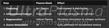 UltraPlasma™ argon plasma mode: Mid-penetration, anti-inflammatory, oxygenation-promoting.