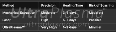 UltraPlasma™ enables non-invasive, gas-enhanced, multi-layered removal of milia with minimized recovery time and scarring. The adjustable emission spectrum ensures patient-specific settings, outperforming traditional techniques.